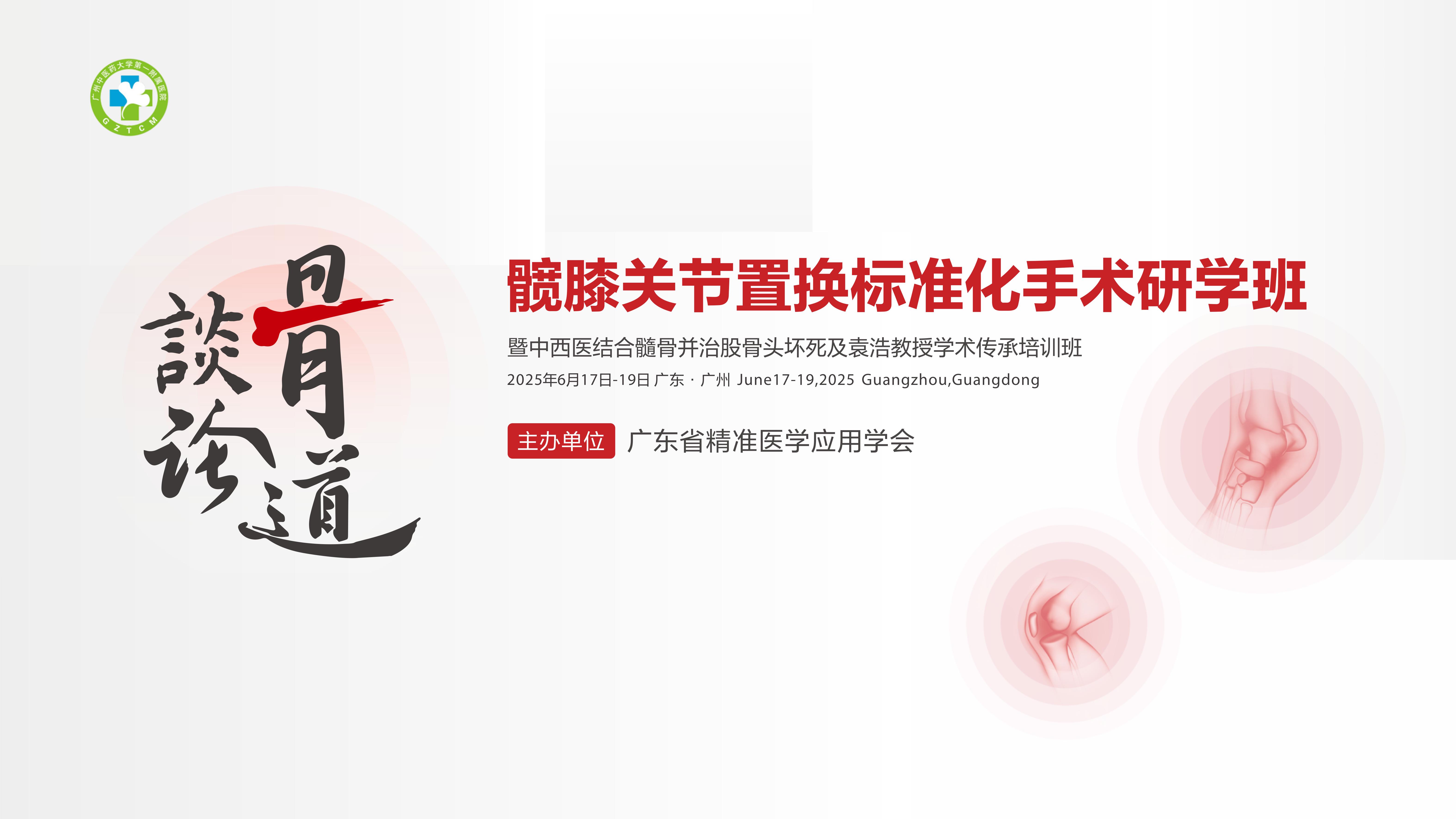 加强培养区域内致力于髋膝关节置换手术技术研究的临床人才培养,促进髋膝关节疾病临床诊疗的交流与合作,进一步推动髋膝关节置换技术的规范化、精准化发展,提升区域内骨科诊疗同质化水平,由广东省精准医学应用学会主办、髋膝关节病分会承办的“广州中医药大学第一附属医院髋膝关节置换标准化手术研学班暨中西医结合髓骨并治股骨头坏死及袁浩教授学术传承培训班”,将于2025年6月17日-19日在广州举办。