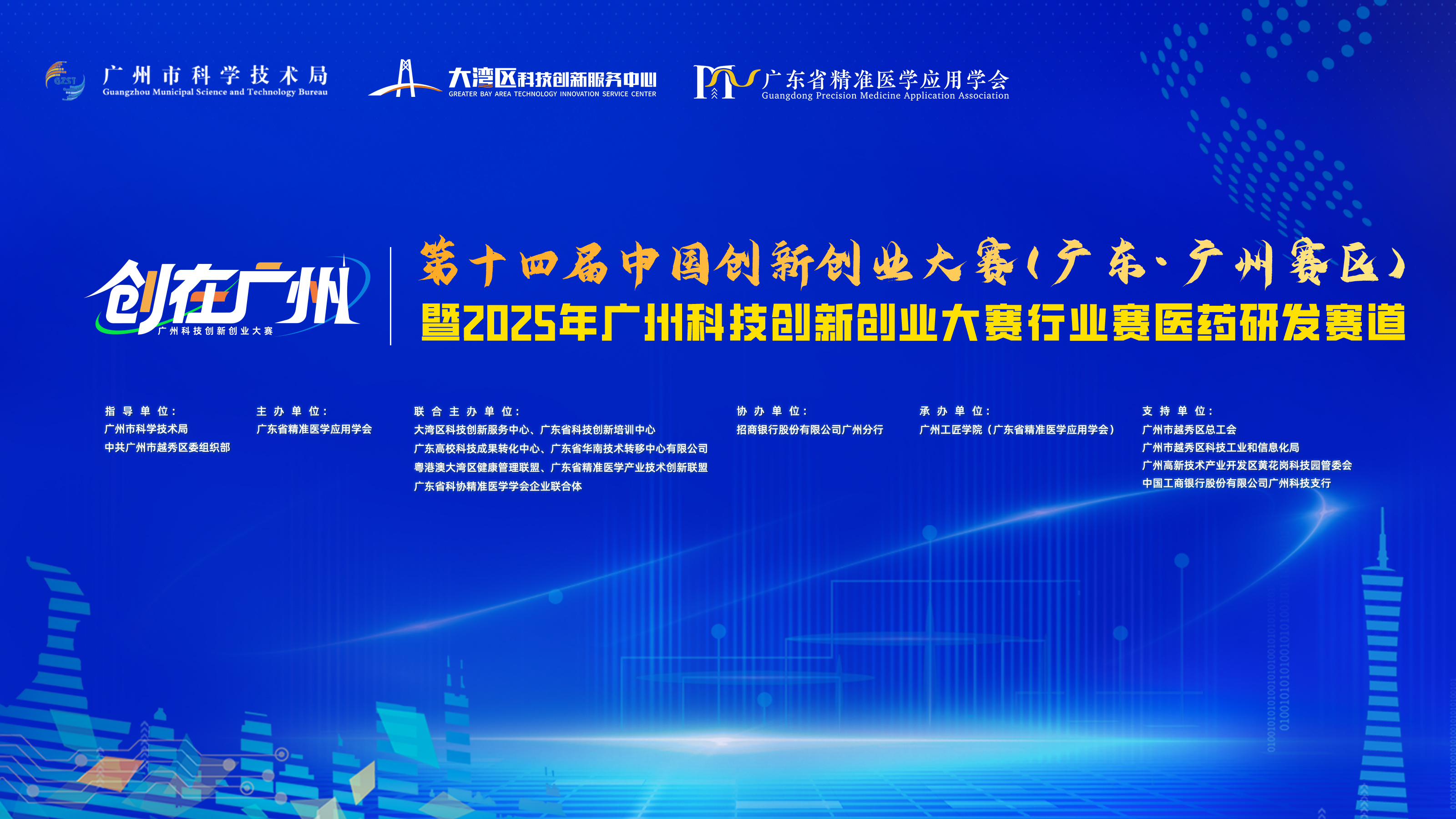 为深入学习贯彻党的二十大精神和习近平总书记对广东系列重要讲话、重要指示精神,按照省委“1310”具体部署和市委“1312”思路举措,加快构建广州“12218”现代化产业体系,加快实施创新驱动发展战略,培育壮大新质生产力,推动科技创新和产业创新融合发展,根据广州市科学技术局《关于举办2025年广州科技创新创业大赛(行业赛、港澳台赛)的通知》,我会将主办第十四届中国创新创业大赛(广东·广州赛区)暨2025年广州科技创新创业大赛行业赛医药研发赛道(以下简称“医药研发赛道”)。