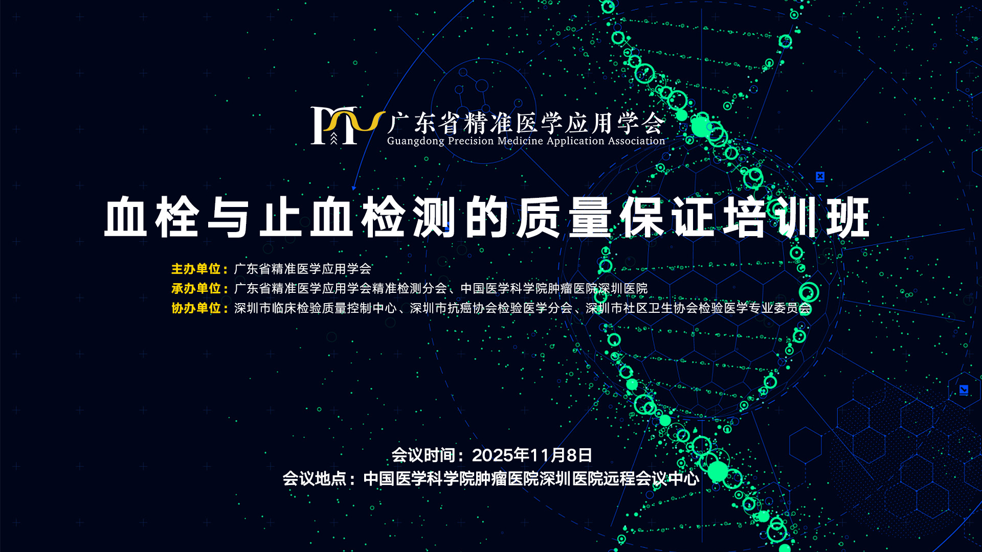由广东省精准医学应用学会主办,精准检测分会、中国医学科学院肿瘤医院深圳医院承办,深圳市临床检验质量控制中心、深圳市抗癌协会检验医学分会和深圳市社区卫生协会检验医学专业委员会协办的广东省继续教育项目“血栓与止血检测项目的质量保证培训班”【项目编号:2025021100014】将于2025年11月8日在深圳举办。
