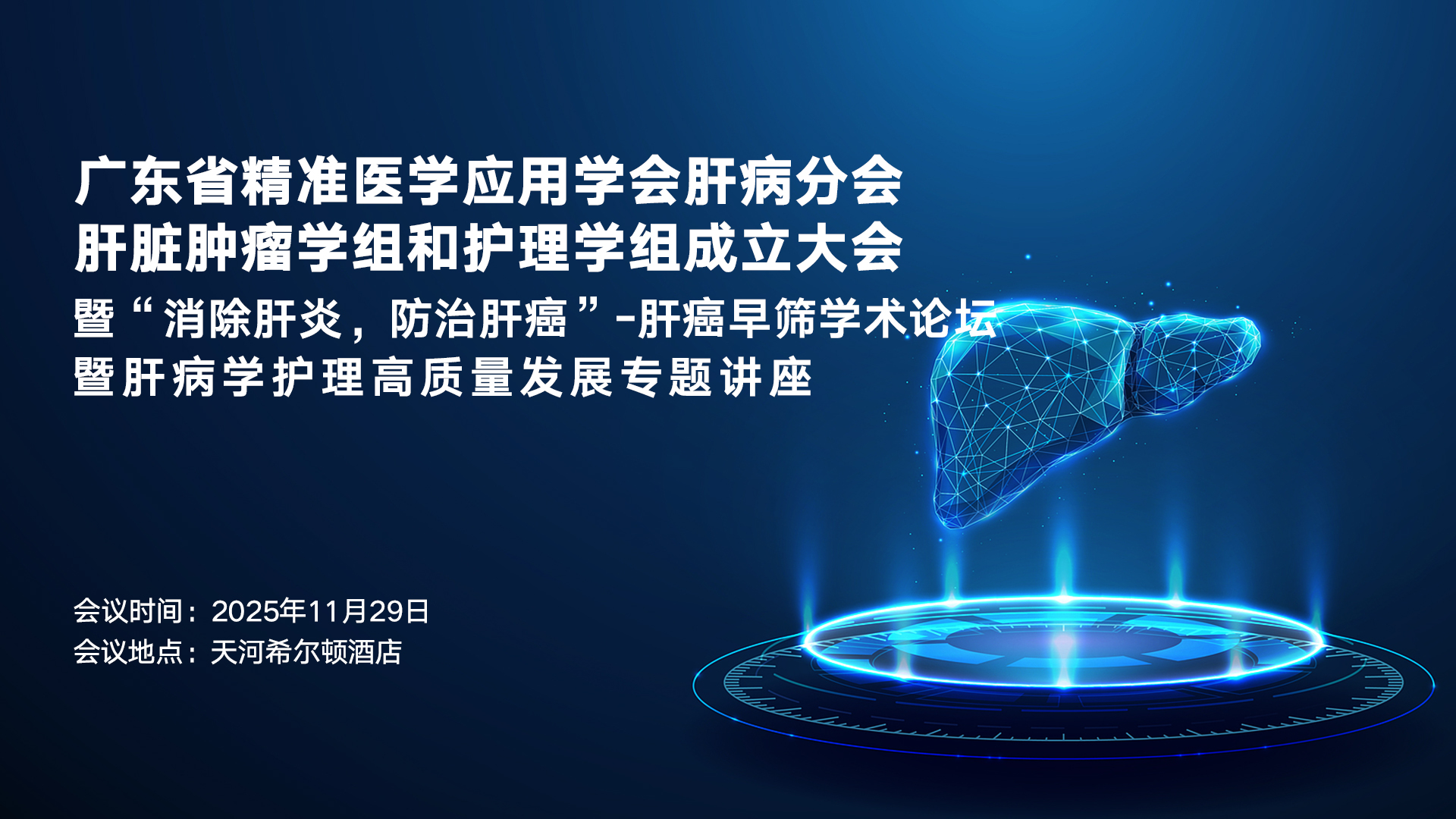 为进一步落实《“健康中国2030”规划纲要》具体要求,进一步加强肝癌早筛早诊工作,提升肝病患者护理专业能力,实现肝病学护理高质量发展,由广东省精准医学应用学会主办,南方医科大学南方医院、学会肝病分会肝癌学组和肝病分会护理学组承办的“广东省精准医学应用学会肝病分会肝癌学组和护理学组成立大会暨‘消除肝炎,防治肝癌’-肝癌早筛学术论坛暨肝病学护理高质量发展专题讲座”将于2025年11月29日在广州举办。