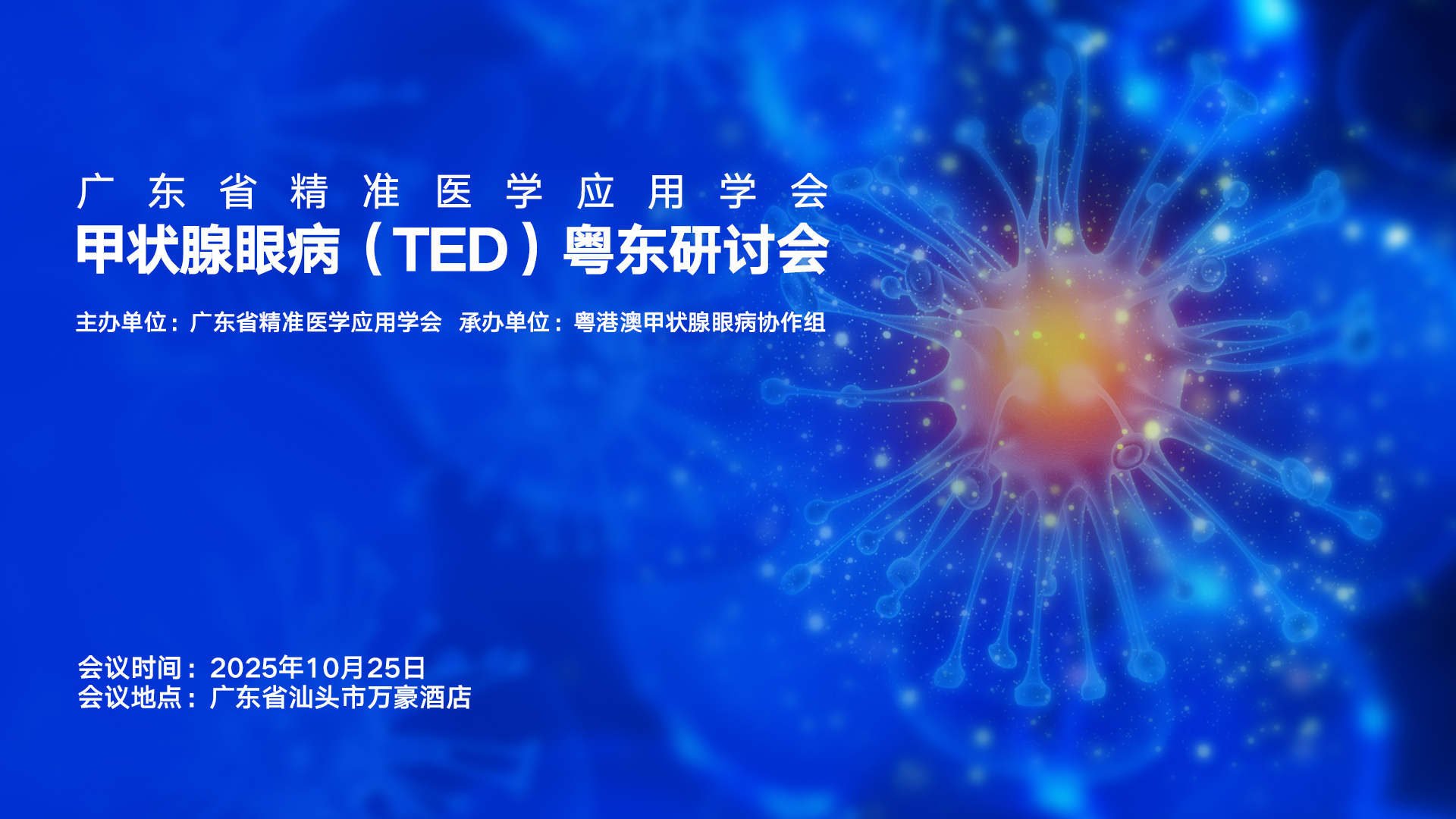 甲状腺眼病是一种复杂的自身免疫性疾病,其流行病学、临床特征、诊断、治疗及研究等方面都有其独特的现状,目前在诊断和治疗方面取得了一定进展,但仍面临诸多挑战,需要进一步深入研究以提高对该疾病的认识和治疗水平。由广东省精准医学应用学会主办,粤港澳甲状腺眼病协作组承办的“广东省精准医学应用学会甲状腺眼病(TED)粤东研讨会”将于2025年10月25日在汕头市举办。