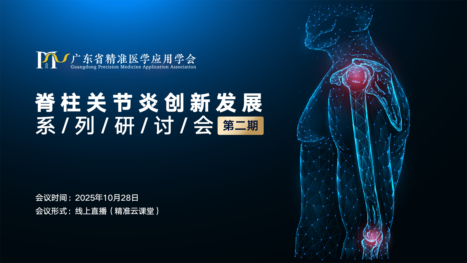 促进免疫性脊柱关节病诊断、治疗学术交流和新技术推广,由广东省精准医学应用学会主办,自身免疫病分会承办的“脊柱关节炎创新发展系列研讨会第2期”,将于2025年10月28日以线上会议形式举办。会议将邀请脊柱关节炎免疫性系统疾病诊断、治疗及研究领域临床专家、病理专家、基础研究等方面专家作专题报告,希望通过多方面交流、探讨脊柱关节病免疫性疾病精准医学前沿技术、临床应用。