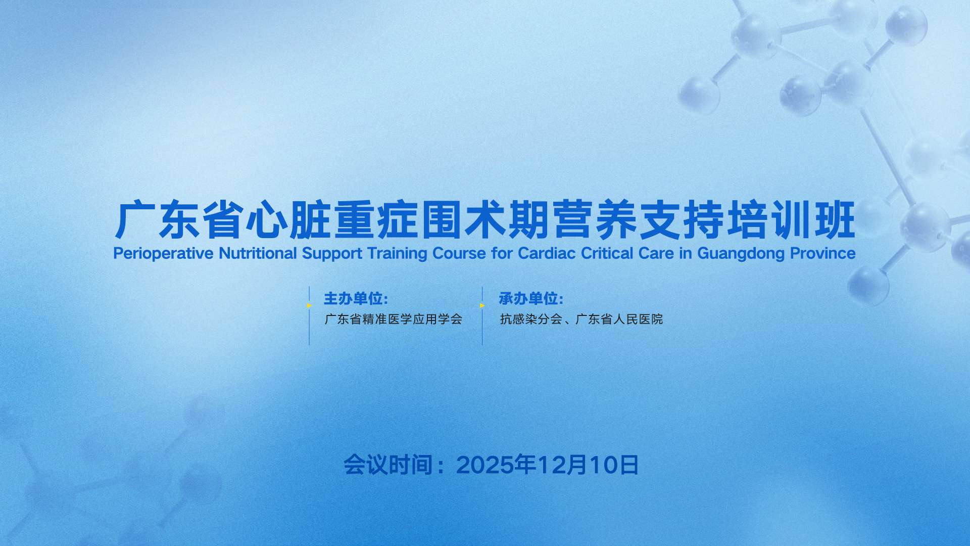 深入贯彻国家重症医学质量控制要求,促进营养治疗理念在心脏重症管理中的规范化应用,推动多学科协作与临床实践创新,由广东省精准医学应用学会主办,抗感染分会、广东省人民医院承办的“广东省心脏重症围术期营养支持培训班”,原计划2025年12月3日在广州举办,现延期至2025年12月10日举行。