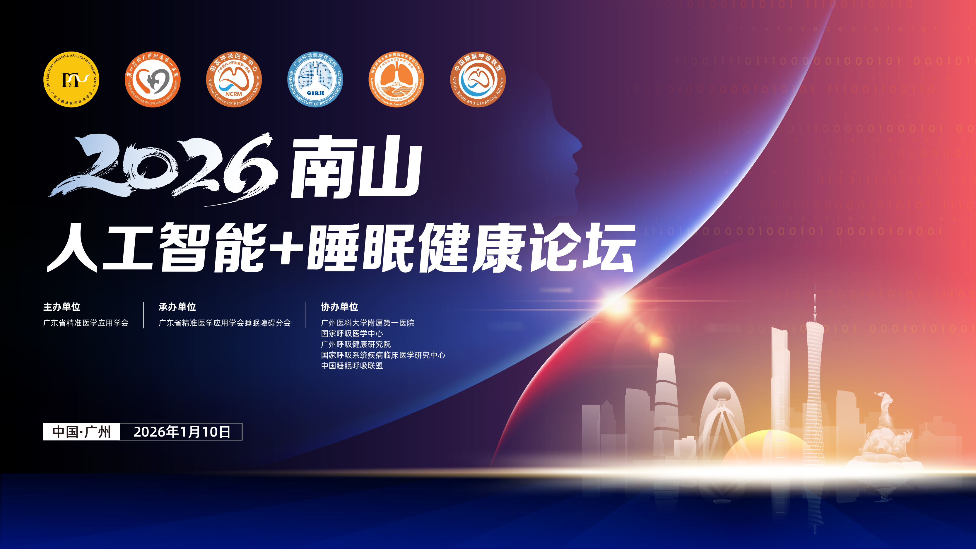 广东省精准医学应用学会主办,广东省精准医学应用学会睡眠障碍分会承办,广州医科大学附属第一医院协办的“2026年南山人工智能+睡眠健康论坛”,将于2026年1月10日在广州市举行。大会将邀请广东省内外睡眠医学领域临床专家、影像专家、基础研究专家,以及大数据平台、AI技术等方面专家作专题报告,希望通过多方面交流、探讨睡眠障碍领域精准医学前沿技术、临床应用。