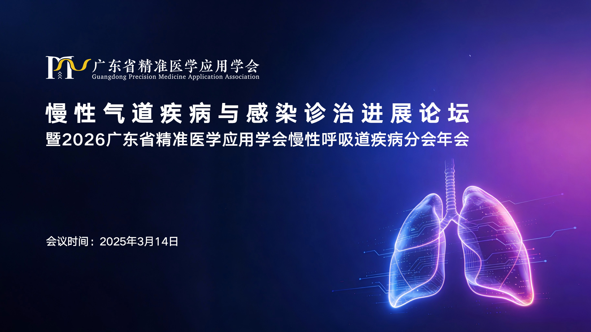 为促进慢性呼吸道疾病领域学术交流,推动精准医学在慢性气道疾病与感染诊治中的应用与发展,提升临床诊疗水平,由广东省精准医学应用学会主办,慢性呼吸道疾病分会承办的“慢性气道疾病与感染诊治进展论坛暨2026广东省精准医学应用学会慢性呼吸道疾病分会年会”,将于2026年3月14日在广州举办。