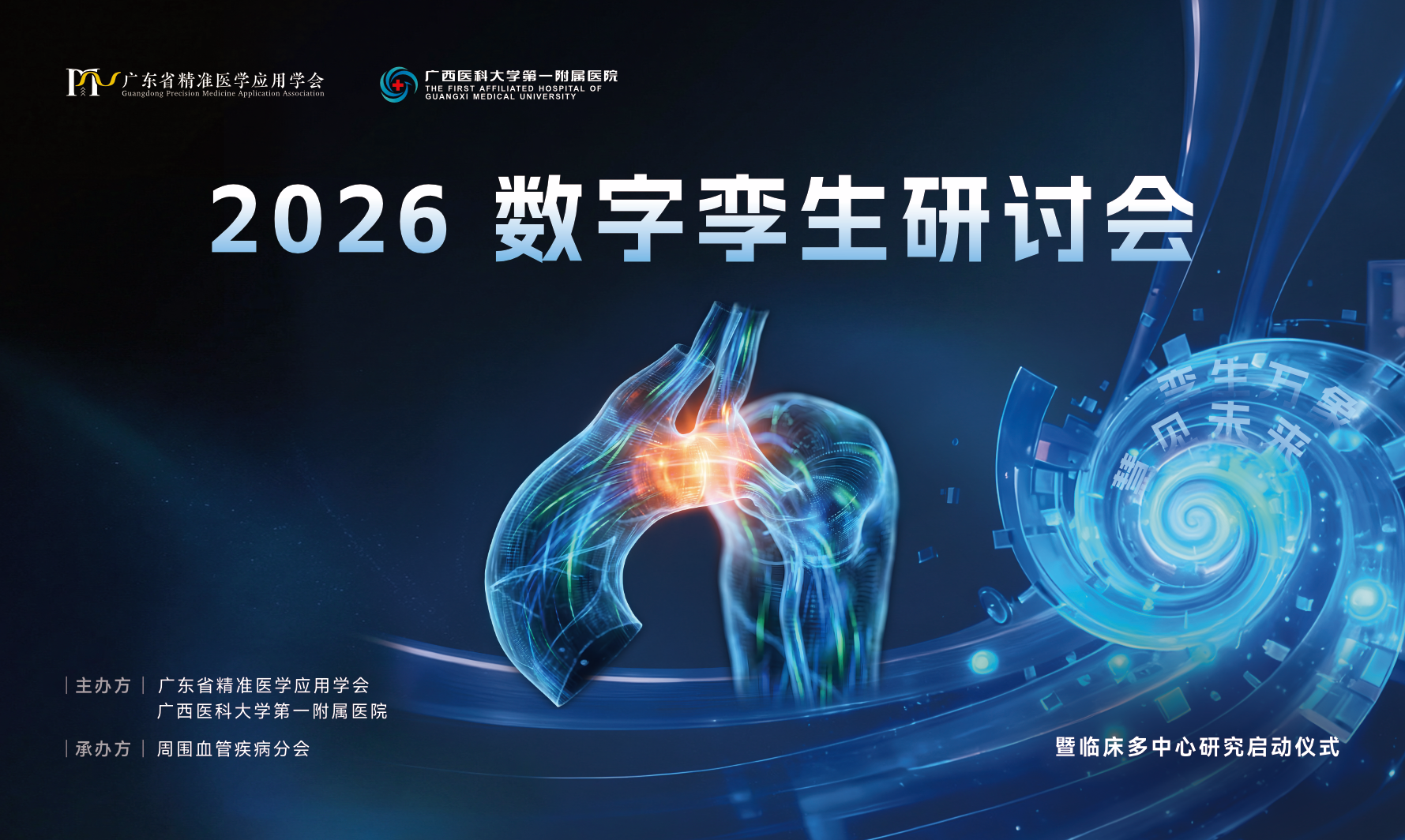 入探讨数字孪生技术在心血管疾病诊疗中的创新应用和器械开发,推动数值仿真技术与临床医学的融合,由广东省精准医学应用学会和广西医科大学第一附属医院联合主办,周围血管疾病分会承办的“2026数字孪生研讨会”,将于2026年1月10日在广西北海市举办。