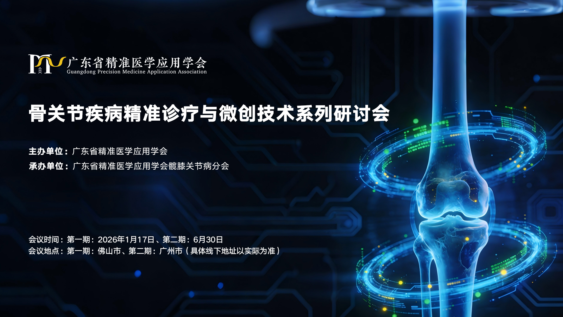 促进骨科领域学术交流,推动骨关节疾病诊疗规范化,推广微创与精准治疗新技术,提升广大骨科医护人员的专业能力,由广东省精准医学应用学会主办,髋膝关节病分会承办的“骨关节疾病精准诊疗与微创技术系列研讨会”计划于2026年1月17日和6月30日举办2期活动。