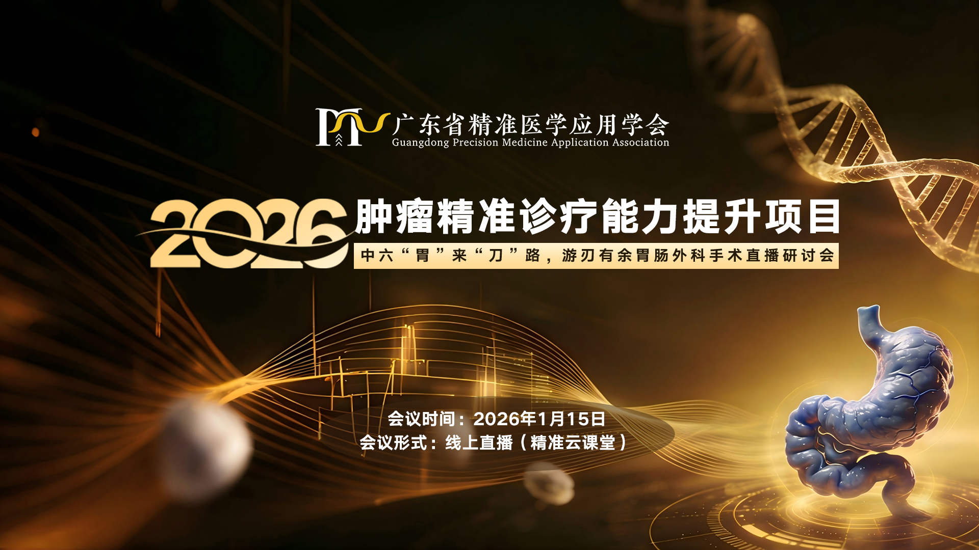 由广东省精准医学应用学会主办的“2026肿瘤精准诊疗能力提升项目-中六‘胃’来‘刀’路,游刃有余胃肠外科手术直播研讨会”,将于2026年1月15日以线上会议形式举办。会议将邀请胃肠肿瘤疾病诊断、治疗及研究领域临床专家、病理专家、药学专家等方面专家作专题报告,在多领域深度解读胃肠肿瘤前沿进展相关专题,互相交流诊疗思路,规范诊疗观念,从而提升整个医疗行业的服务水平和质量。