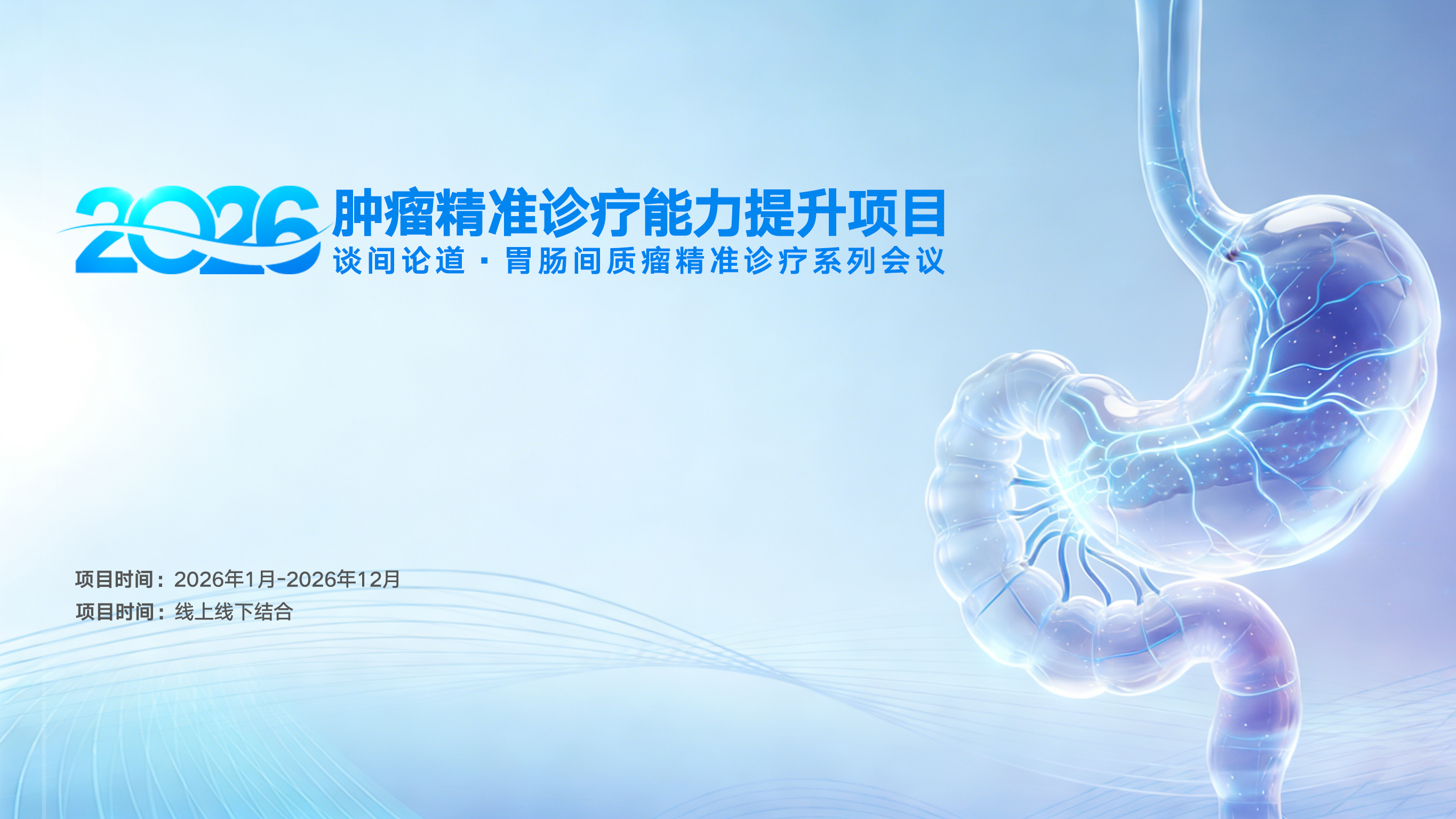 为提升胃肠间质肿瘤诊疗水平,由广东省精准医学应用学会主办的“2026肿瘤精准诊疗能力提升项目-谈间论道•胃肠间质瘤精准诊疗系列会议”将于2026年1月正式启动,会议将聚焦于胃肠间质瘤的精准诊疗策略,深入探讨最新的诊疗技术、临床研究进展及个体化治疗方案的优化,促进不同学科间的交流与合作,推动胃肠间质瘤精准诊疗理念的普及与实践。