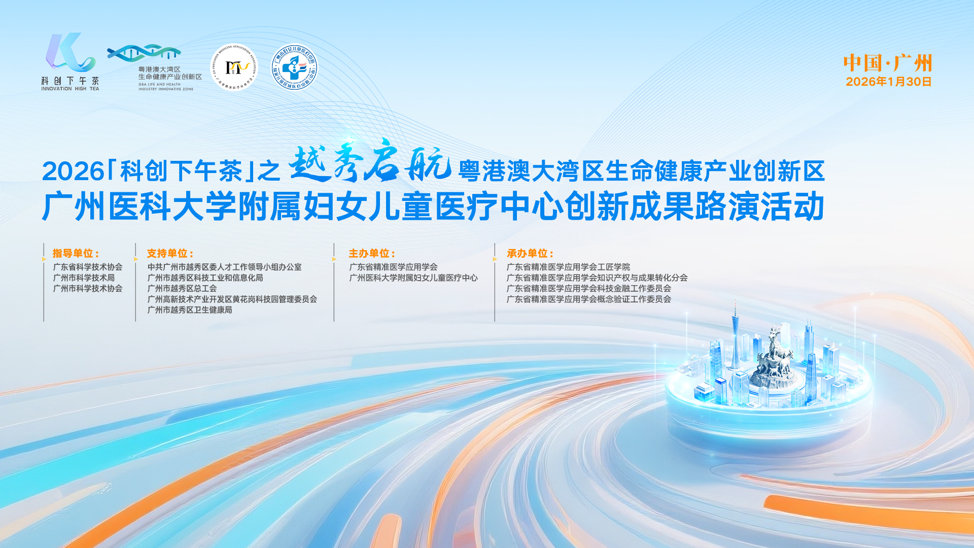 落实国家全面推进生物医药与健康产业科技成果转化发展,推动地区生物医药与健康产业发展,我会将于01月30日组织举办“2026“科创下午茶”之越秀启航·粤港澳大湾区生命健康产业创新区广州医科大学附属妇女儿童医疗中心创新成果路演活动”。现将有关事项进一步通知如下: