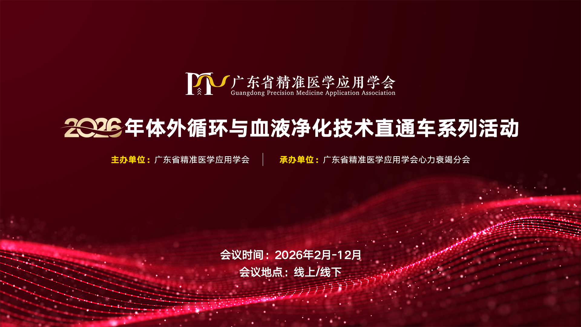 为助力提升心脏领域疾病的诊治水平,由广东省精准医学应用学会主办,心力衰竭分会承办的“2026年体外循环与血液净化技术直通车系列活动”计划于2026年2月-12月期间以线上或线下会议形式举办20场活动。会议将邀请医疗机构心内、心外、体循、ICU、急诊、肾内科等相关领域权威专家,共同深入探讨提升体外循环与血液净化技术,在心脏疾病领域应用的相关工作。
