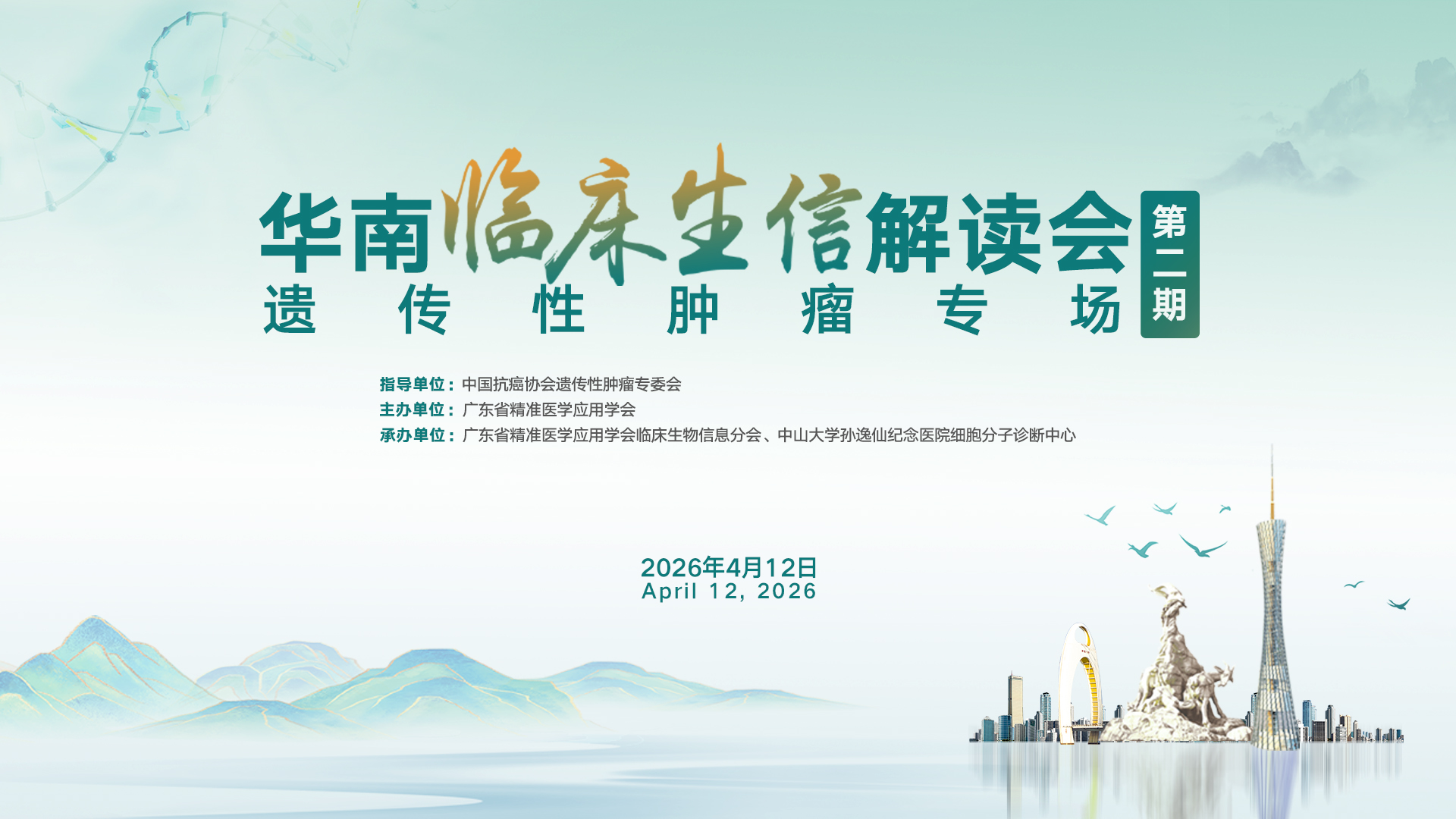 为提升临床生信员对遗传性肿瘤基因变异分类(诊断)的水平,促进NGS技术落地医院,由中国抗癌协会遗传性肿瘤专委会指导,广东省精准医学应用学会主办,广东省精准医学应用学会临床生物信息分会与中山大学孙逸仙纪念医院细胞分子诊断中心联合承办的“华南临床生信解读会第2期-遗传性肿瘤专场”,将于2026年4月12日在广州举办。