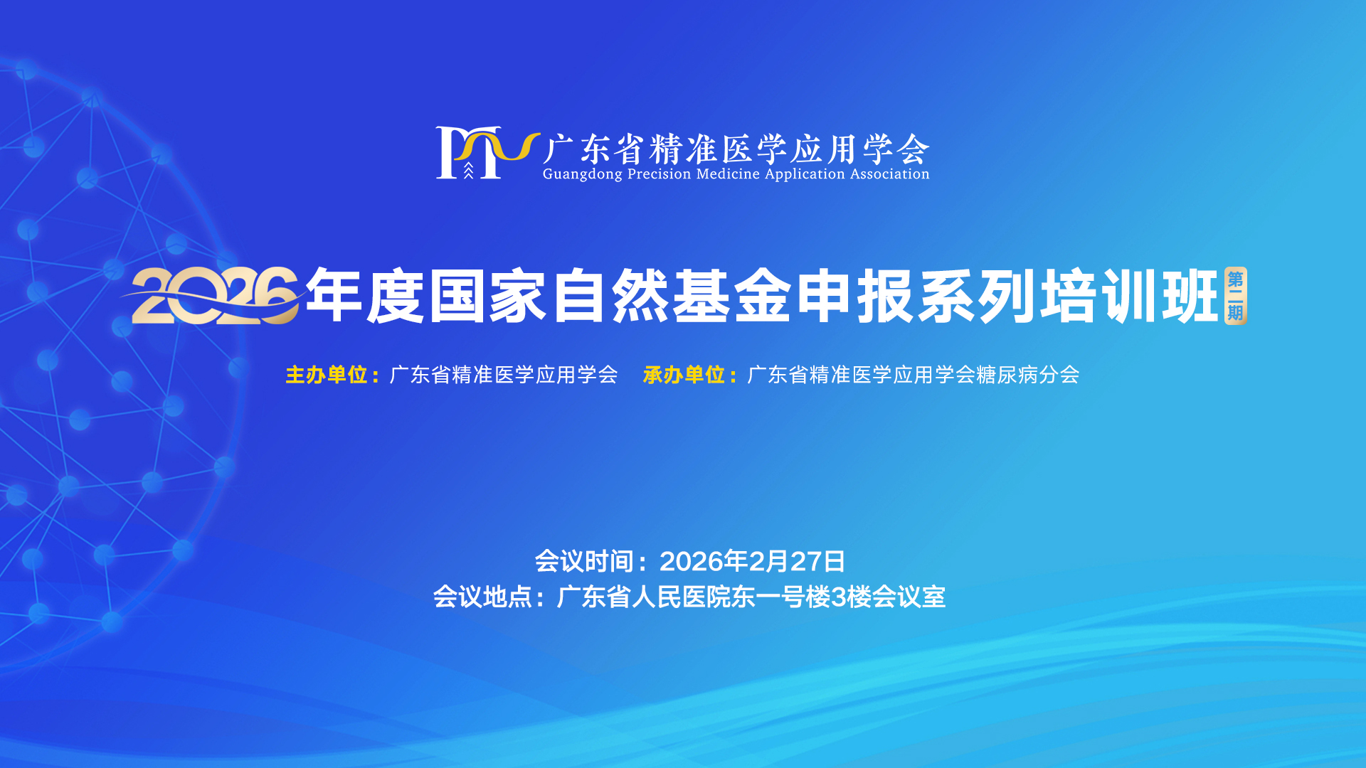为推动医院基础研究发展,进一步做好国家自然科学基金申报准备工作,提升申请书质量和水平,提高申报项目的命中率,由广东省精准医学应用学会主办,广东省精准医学应用学会糖尿病分会承办的“2026年度国家自然基金申报系列培训班”第2期,将于2026年2月27日在广州举办,会议规模50人。现将有关事宜通知如下: