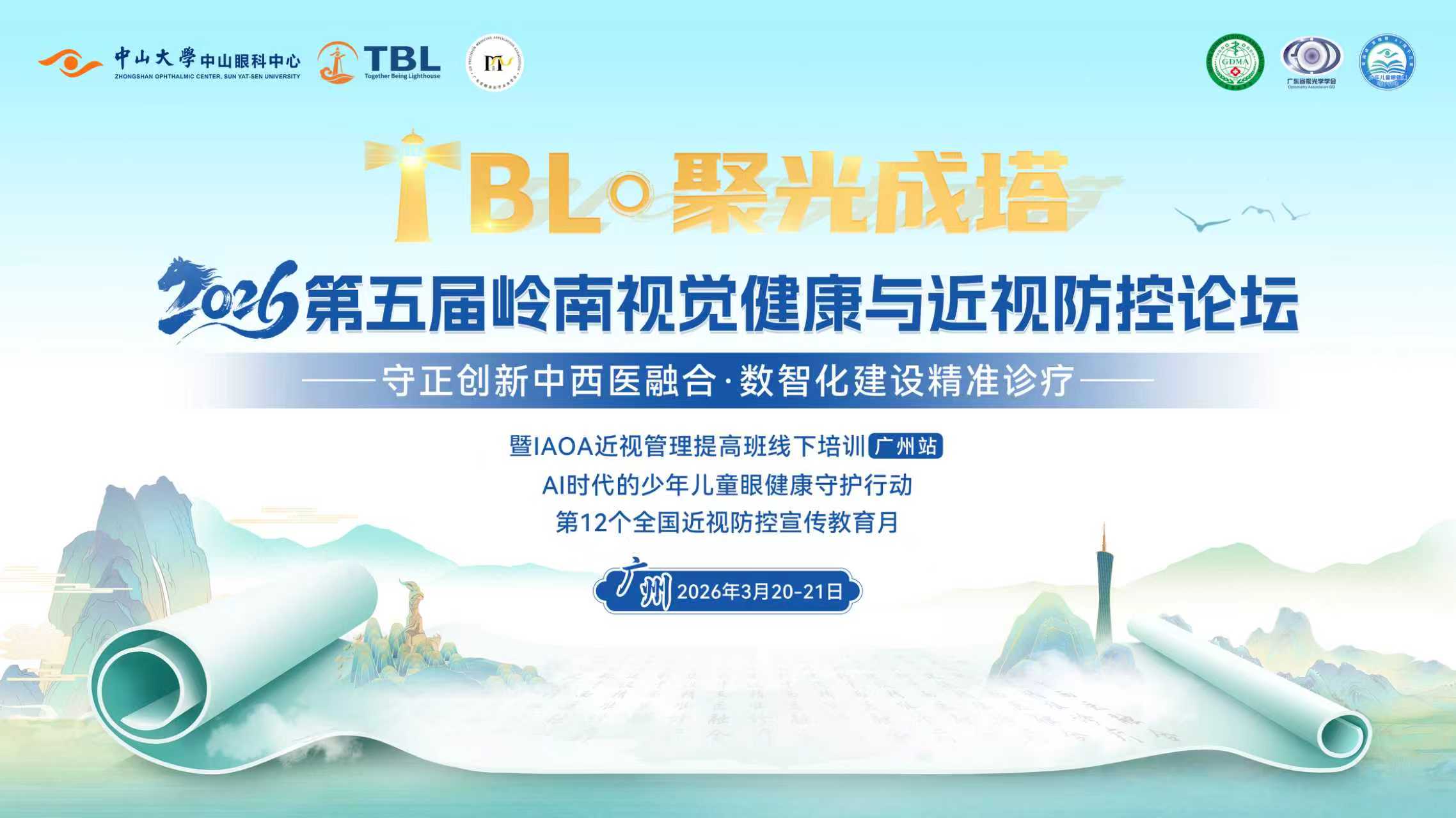 由中山大学中山眼科中心、广东省精准医学应用学会联合主办,广东省精准医学应用学会视觉健康分会承办,广东省医学会眼科分会屈光与视觉康复学组、广东省医师协会眼科医师分会视光与斜弱视专业组、广东省视光学学会接触镜专委会共同协办的“TBL·聚光成塔-2026岭南视觉健康与近视防控论坛”,将于2026年3月20日-21日在广州举办,同期举办“儿童青少年近视防控新技术以及中医近视防控适宜技术推广培训班”。