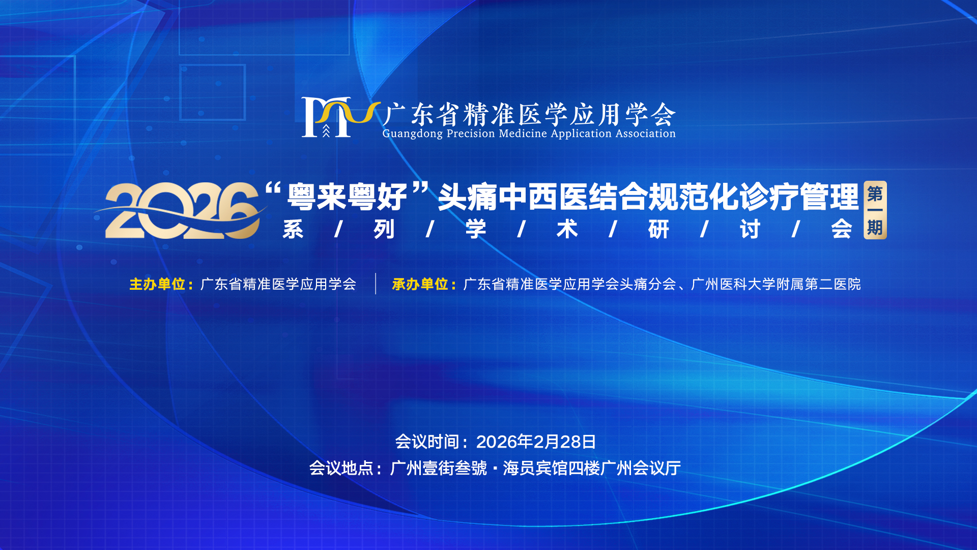 为深入贯彻落实国家关于推动中医药传承创新发展的战略部署,进一步提升头痛疾病的中西医结合诊疗水平,促进临床规范化管理,加强区域间学术交流与协作,由广东省精准医学应用学会主办,头痛分会、广州医科大学附属第二医院承办的“2026‘粤来粤好’头痛中西医结合规范化诊疗管理系列学术研讨第1期”,将于2026年2月28日在广州市举办。