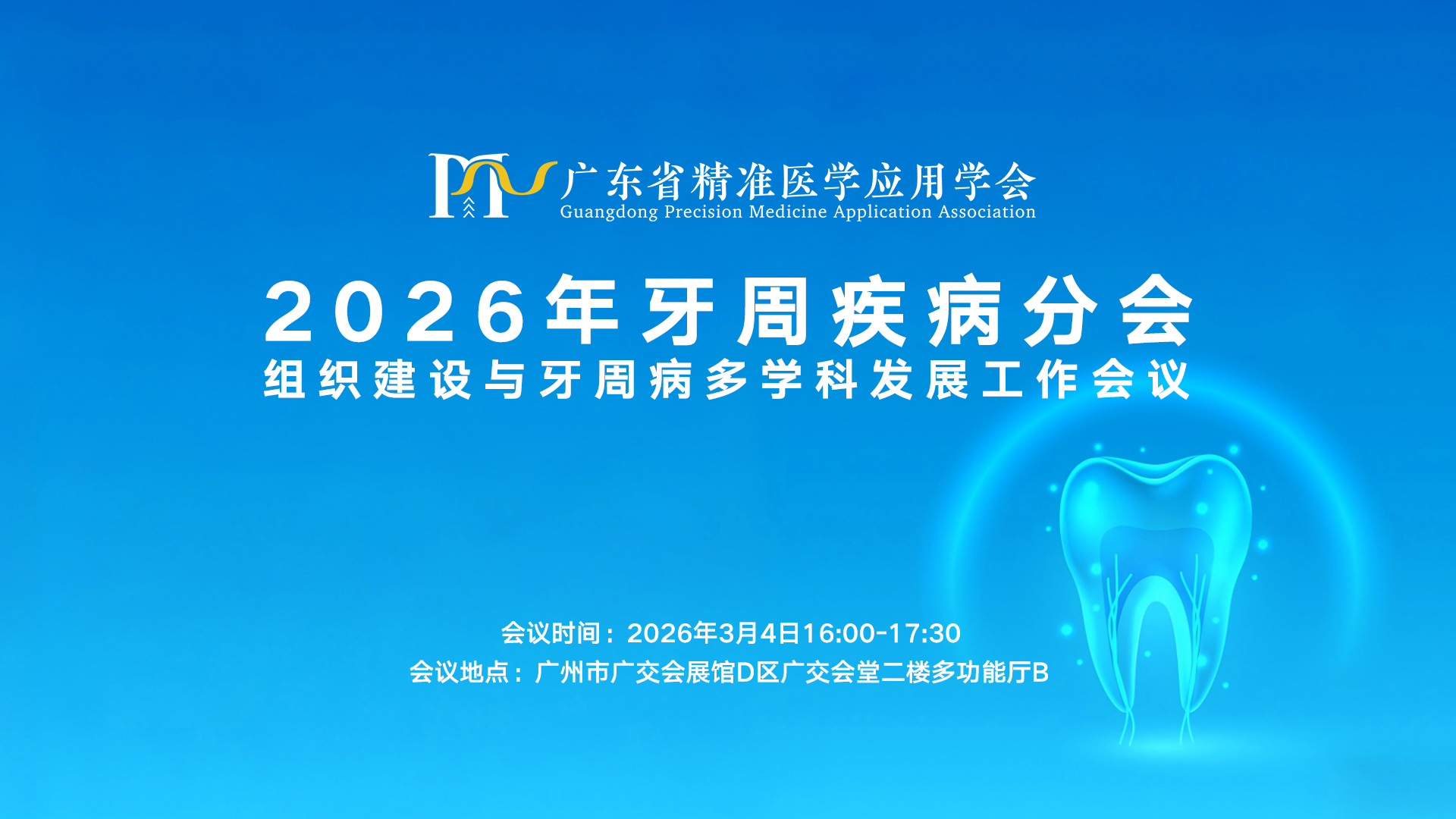 为推动广东省精准医学应用学会牙周疾病分会组织建设,助力理精准医学学科发展,提升牙周疾病研究和应用水平。由广东省精准医学应用学会主办,牙周疾病分会承办的“2026年牙周疾病分会组织建设与牙周病多学科发展工作会议”,将于2026年3月4日在广州市举办。