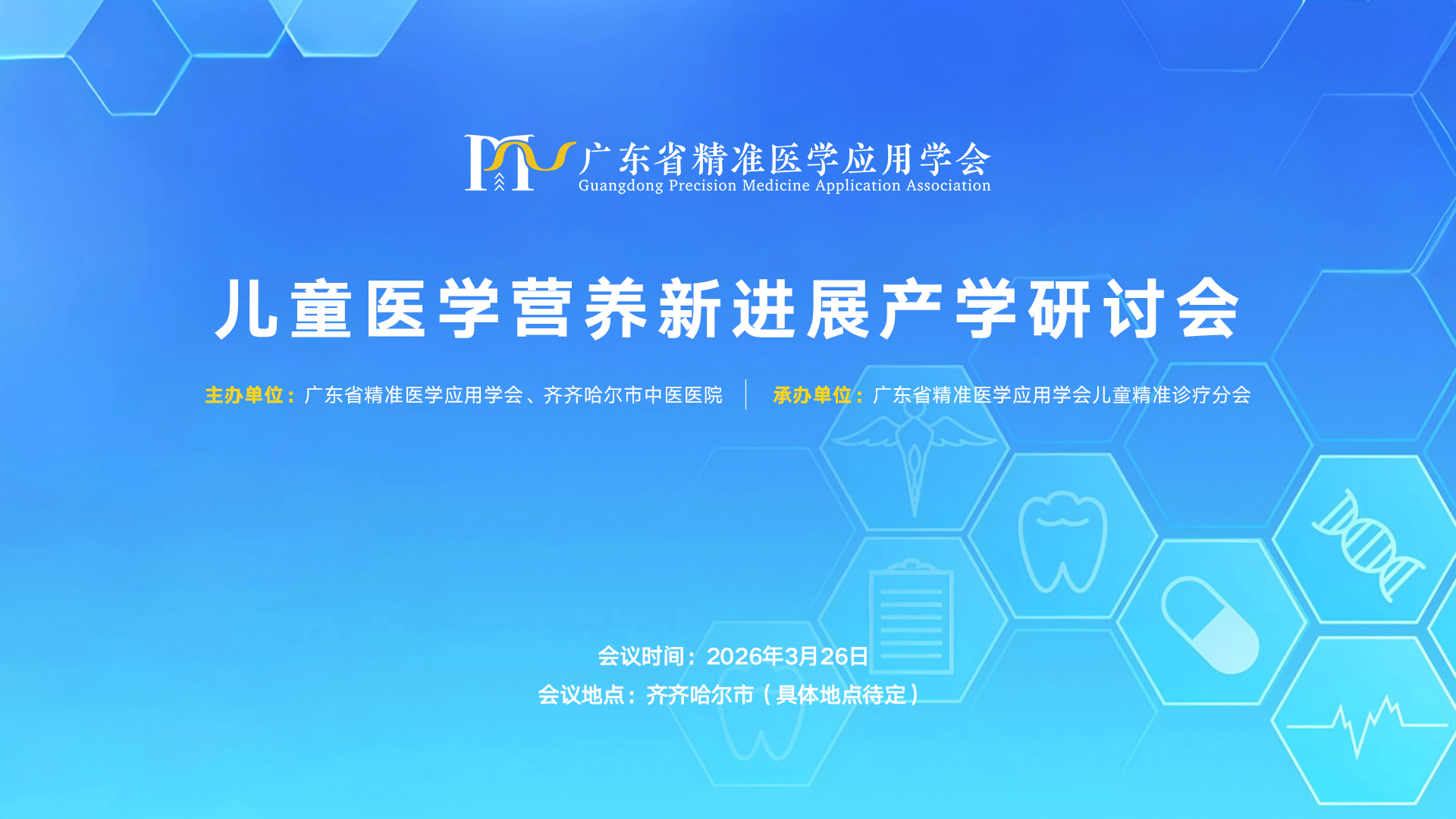 为落实《“健康中国2030”规划纲要》和《健康中国行动(2019-2030年)》,进一步提高儿童健康水平,促进儿童医学营养产学融合发展,加强粤黑两地学术交流,由广东省精准医学应用学会、齐齐哈尔市中医医院联合主办,学会儿童精准诊疗分会承办的“儿童医学营养新进展产学研讨会”,将于2026年3月28日在黑龙江省齐齐哈尔市举办。