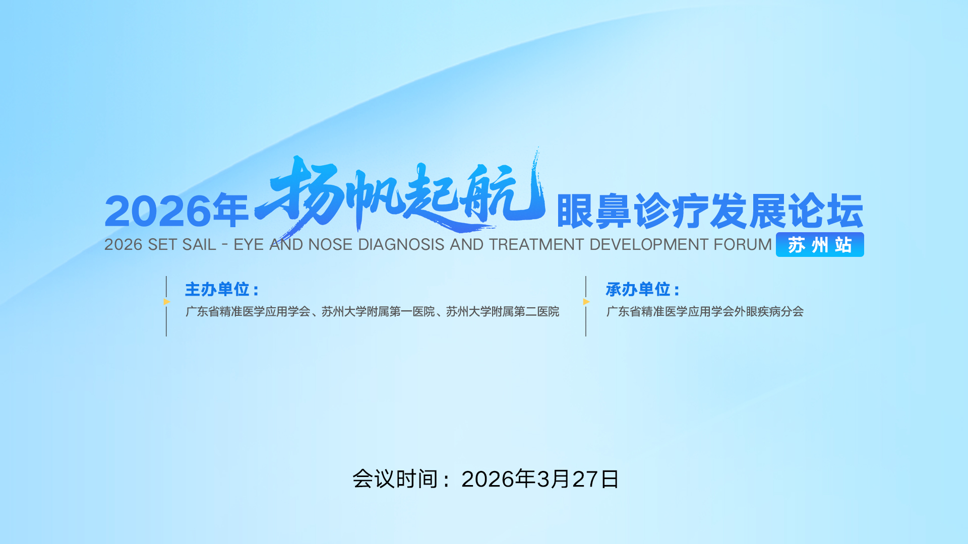 加强粤苏联动,推动学术交流提质增效,促进眼科与耳鼻喉科学界的学术交流与科研合作,由广东省精准医学应用学会、苏州大学附属第一医院、苏州大学附属第二医院联合主办,广东省精准医学应用学会外眼疾病分会承办的“2026年扬帆起航-眼鼻诊疗发展论坛(苏州站)”将于2026年3月27日在江苏省苏州市举办。会议将邀请国内多位知名专家教授做专题讲座,采用影像导航引导下的示教讲解,理论与实操相结合的教学形式,充分展现国内外眼鼻相关疾病诊治的先进理论和临床研究进展。