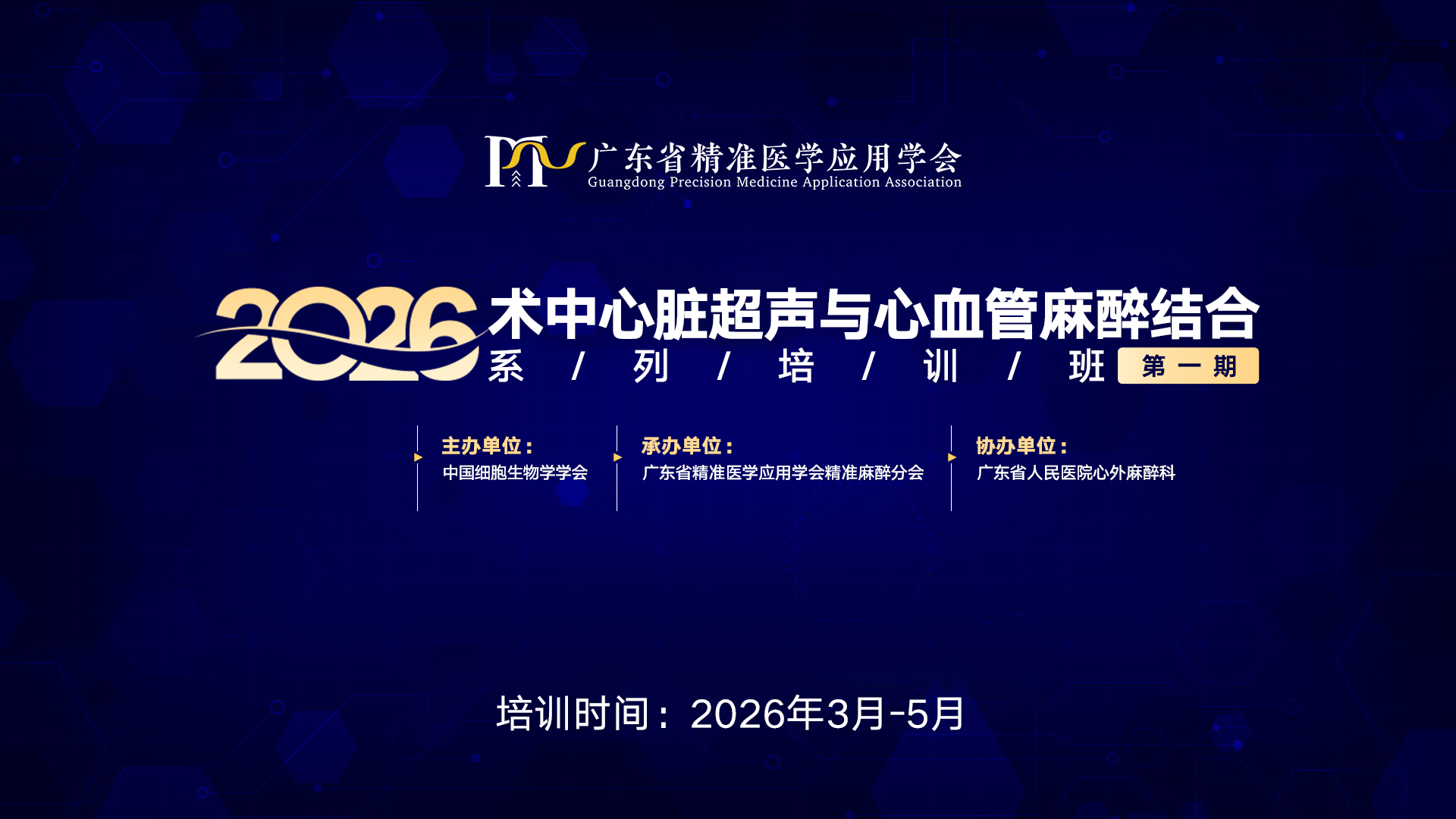 为提升心脏手术麻醉医师在围术期的管理能力,更好地分享和推广术中经食道超声应用,提高麻醉医师应用经食道超声水平,促进心脏手术麻醉的发展,由广东省精准医学应用学会主办,精准麻醉分会承办,广东省人民医院心外麻醉科协办的“2026术中心脏超声与心血管麻醉结合系列培训班第1期”,将于2026年3月-5月期间举办。