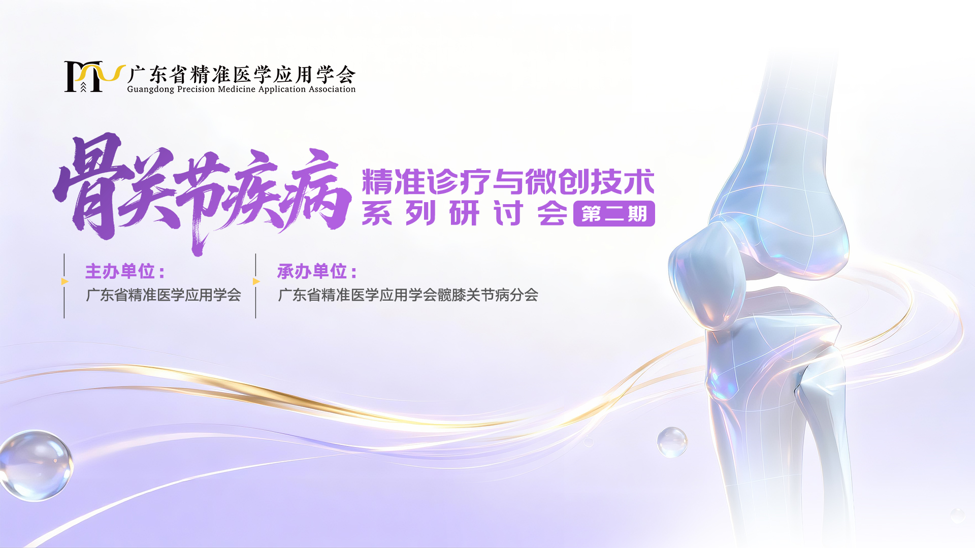 促进骨科领域学术交流,推动骨关节疾病诊疗规范化,推广微创与精准治疗新技术,提升广大骨科医护人员的专业能力,由广东省精准医学应用学会主办,髋膝关节病分会承办的“骨关节疾病精准诊疗与微创技术系列研讨会(第二期)”计划于2026年3月21日在广东省深圳市举办。