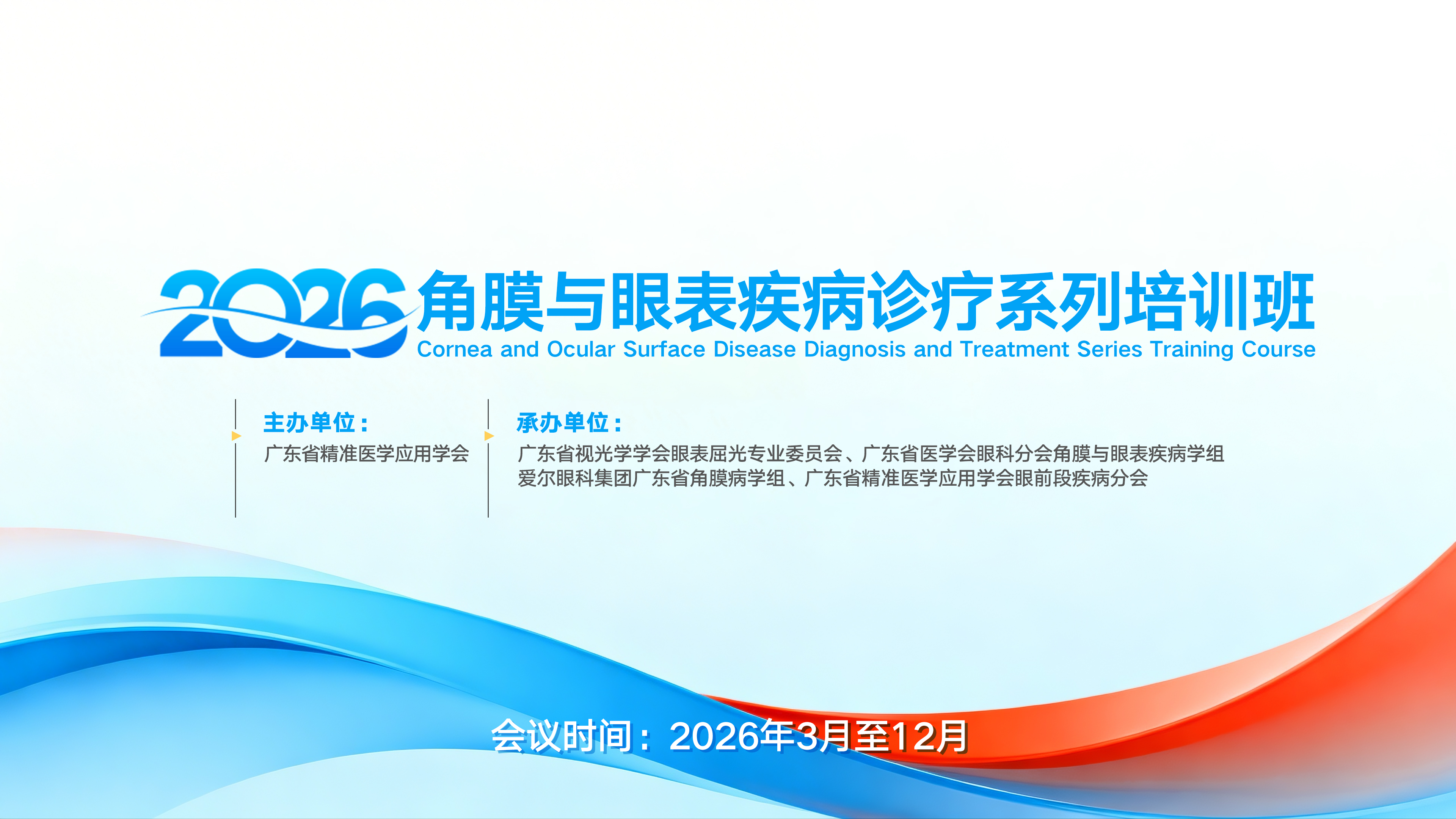 为推动角膜与眼表疾病诊疗领域的学术交流与发展,促进相关技术与临床应用的深度融合,由广东省精准医学应用学会主办,广东省视光学学会眼表屈光专业委员会、广东省医学会眼科分会角膜与眼表疾病学组、爱尔眼科集团广东省角膜病学组、广东省精准医学应用学会眼前段疾病分会承办的“角膜与眼表疾病诊疗系列培训班”,将于2026年3月-12月举办4期。