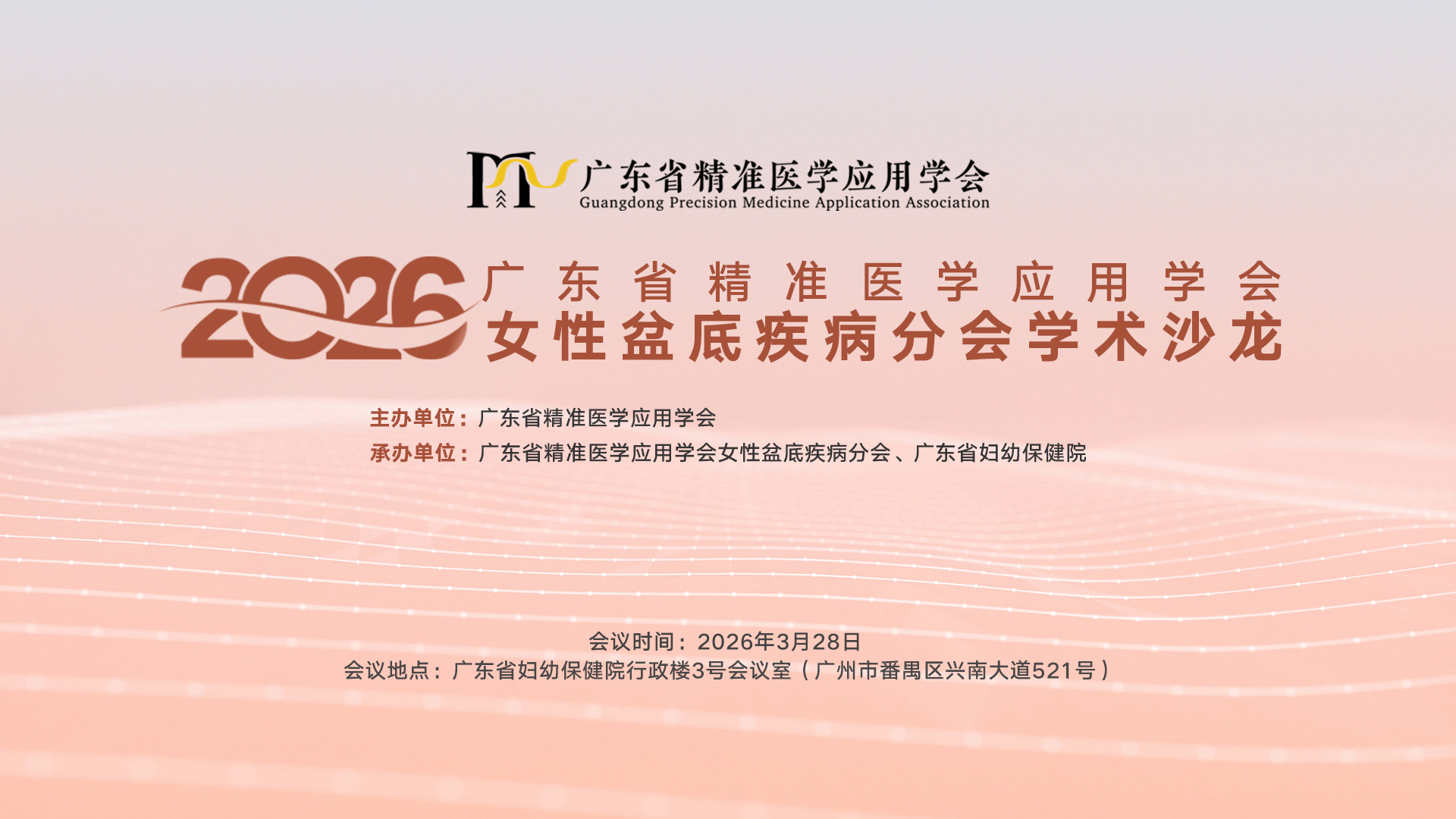 推动我省女性盆底疾病诊疗领域的精准化、规范化发展,搭建省内盆底疾病诊疗学术交流与技术共享优质平台,提升临床医师盆底疾病诊疗水平与手术实操能力,由广东省精准医学应用学会主办,女性盆底疾病分会、广东省妇幼保健院共同承办的“2026广东省精准医学应用学会女性盆底疾病分会学术沙龙”,将于2026年3月28日在广州举行。