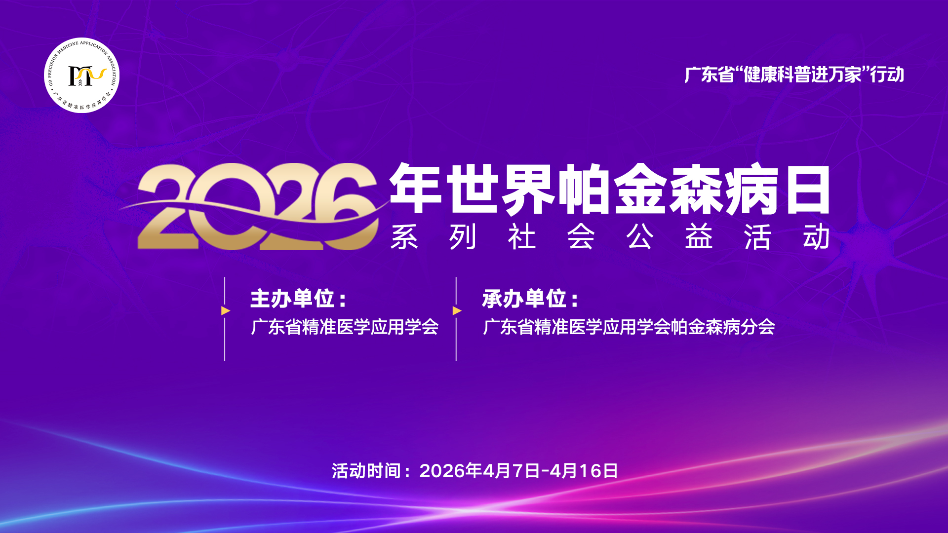 2026年4月11日是第30个“世界帕金森病日”,今年主题为“科技新赋能,智护帕全程”。为深入落实《“健康中国2030”规划纲要》部署,积极响应广东省“健康科普”进万家行动号召,进一步提升公众对帕金森病的关注,由广东省精准医学应用学会主办、帕金森病分会承办的“2026年世界帕金森病日系列社会公益活动”,将于4月7日-16日在广州举办。活动将通过科普讲座、义诊、免费检测等形式,为广大帕金森病患者提供更专业的咨询与规范化治疗指导,助力延缓疾病进展。
