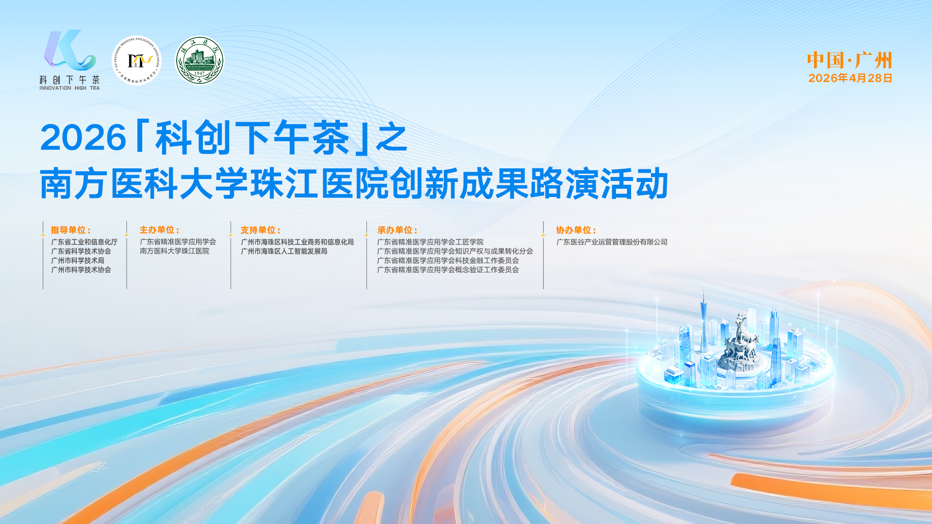 为深入贯彻落实国家关于发展新质生产力、推动生物医药与健康产业高质量发展的战略部署,促进医院成果精准对接、项目精准转化,我会联合南方医科大学珠江医院于2026年4月28日举办2026“科创下午茶”之南方医科大学珠江医院创新成果路演活动。现将有关事项进一步通知如下: