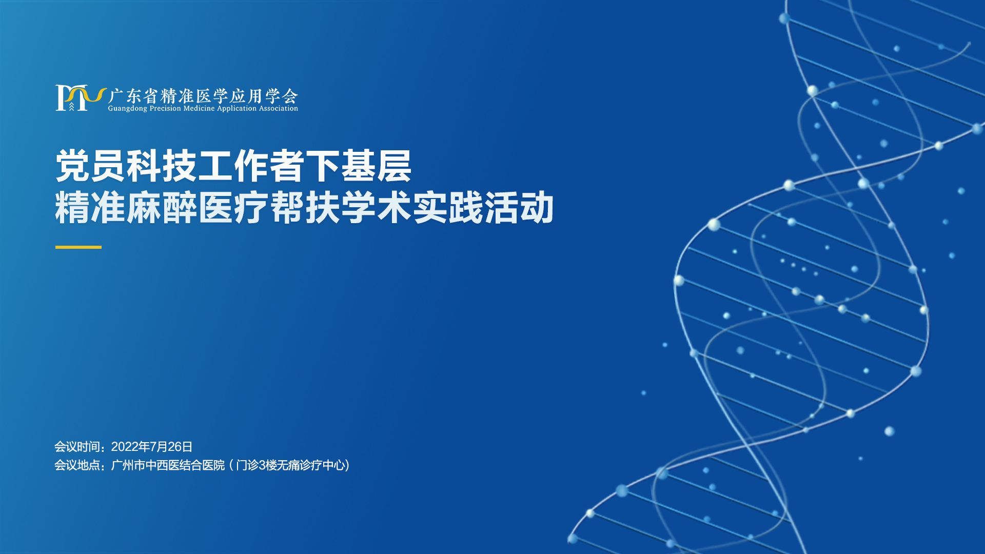 为推动广大党员科技工作者走好新时代党的群众路线,深入基层、深入实际,推动麻醉学新知识新技术的传播更新,提升基层麻醉医务人员的专业素质,保障基层医疗机构临床麻醉安全,促进患者早日康复,实现从麻醉学向围术期医学转换,同时发挥党员科技工作者的模范先锋作用,助力基层医疗卫生事业发展,由广东省精准医学应用学会主办,广东省人民医院、精准麻醉分会承办,广州市中西医结合医院协办的“党员科技工作者下基层精准麻醉医疗帮扶学术实践活动”计划于2022年7月26日在广州市举办。现将有关事项通知如下: